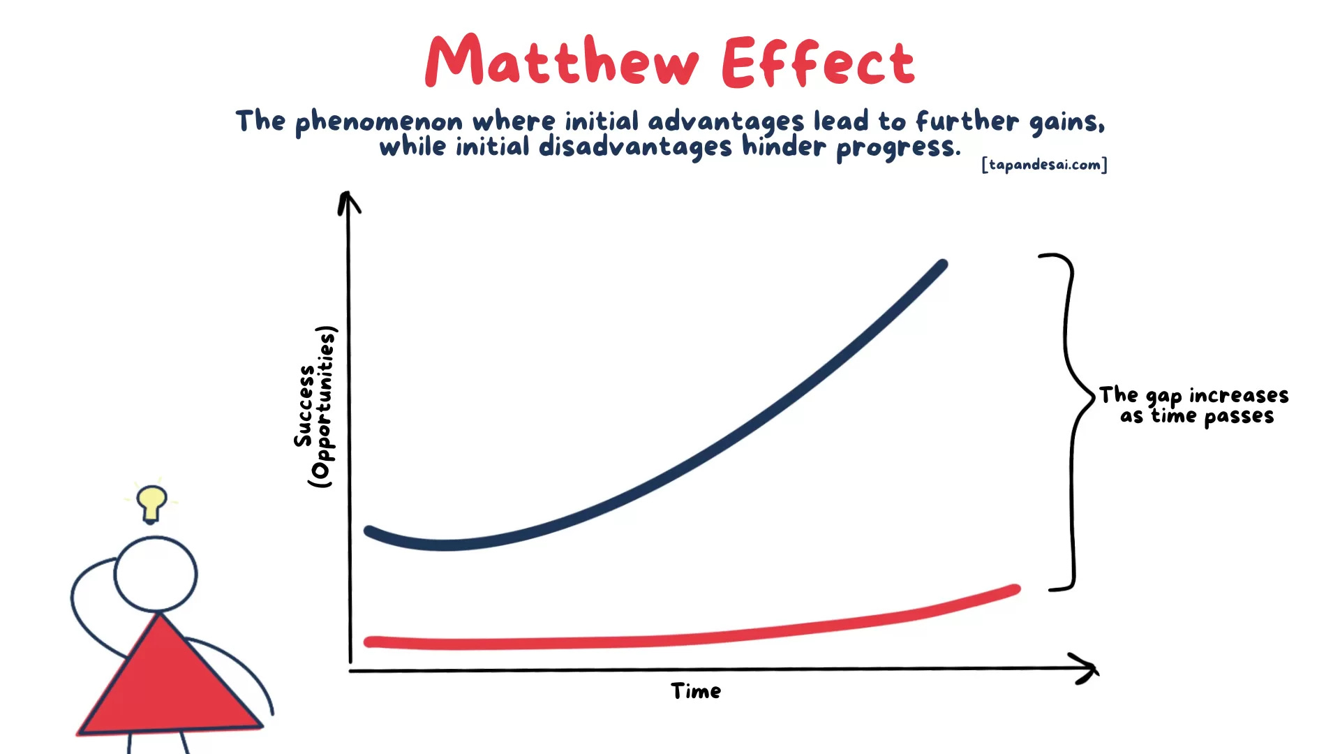 This is called the Matthew Effect. It takes its name from the “Parable of the Talents” in the Bible’s Gospel of Matthew, which has been summarized as, “the rich get richer and the poor get poorer.”